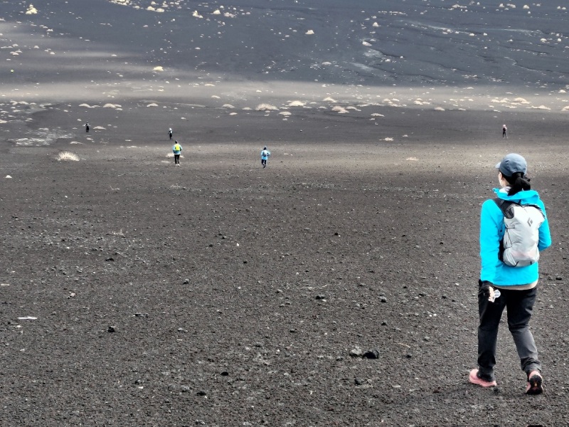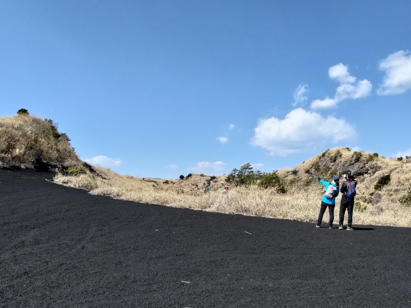 講習ではロゲイニングの振り返りや、コースを使ってのナビゲーション練習を行いスキルアップを図っていただきました。フィールド練習は三原山裏砂漠エリアを利用し、他ではなかなか体験できない1㎞の直進にチャレンジしてもらったり、細かな地形を読んでのナビゲーションを行いました。難しいエリアのためうまくできない場面もありましたが、ナビゲーションではうまく行った体験も大事ですが、失敗した体験の数がその後の強さに繋がるとも思っています。受講された皆さんには何が難しかったのか、でもその中で何なら出来ていたかを再度振り返っていただき、これからのステップアップにつなげていただけたらなと思います。