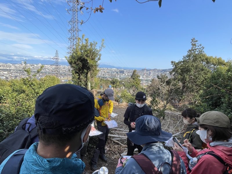 NHK大河ドラマ「鎌倉殿の13人」でも話題になるであろう梶原山周辺のハイキングコースを利用。前半は尾根・谷の地形読み、コンパスを使った方向確認、さらに整置などのナヴィゲーションを助けるテクニックを1つ1つ学び、後半はペアになってある区間のナヴィゲーションを担当してもらう実践課題を行いました。実践課題では何を見ればよかったのかを振り返り、確実に進むために考えることなど応用的な内容にも触れていきました。