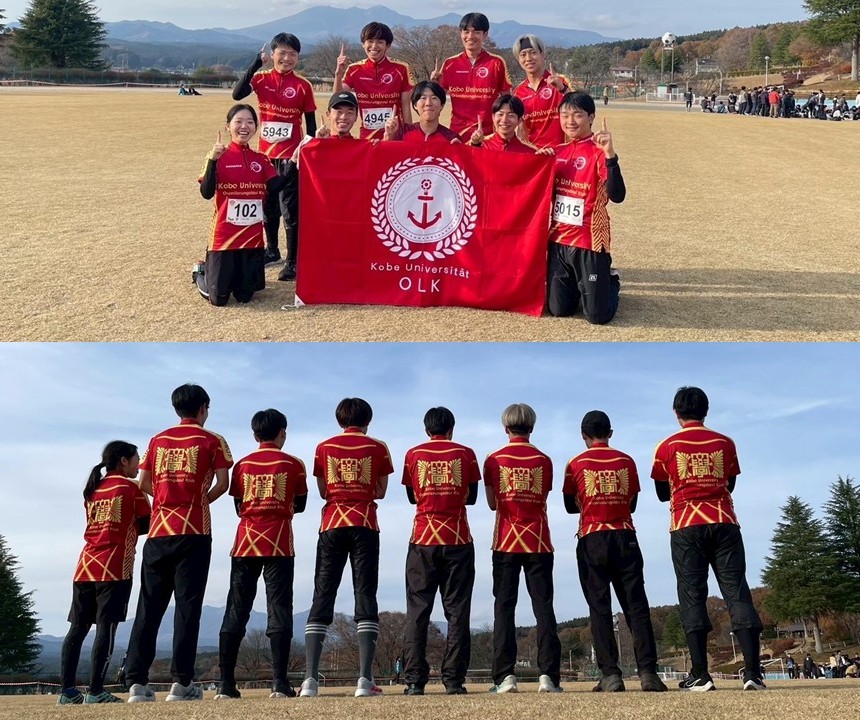 神戸大学オリエンテーリングクラブよりチームウェア(コンバット)の作成をご依頼いただいております。最初にお問合せいただいたのは2017年でクラブ員の方が作成したデザインを基にデザイナーと色合いの調整などを行い仕上げました。大学の学章がデザインの基となっています。最初の作成から8年、デザインもほとんど変更せずユニフォームとして定着しており、インカレをはじめ各大会でも存在感を放っています。当初は注文頻度も多くはなかったのですが、近年はコンスタントにご注文いただいておりクラブに活気があることも感じられます。