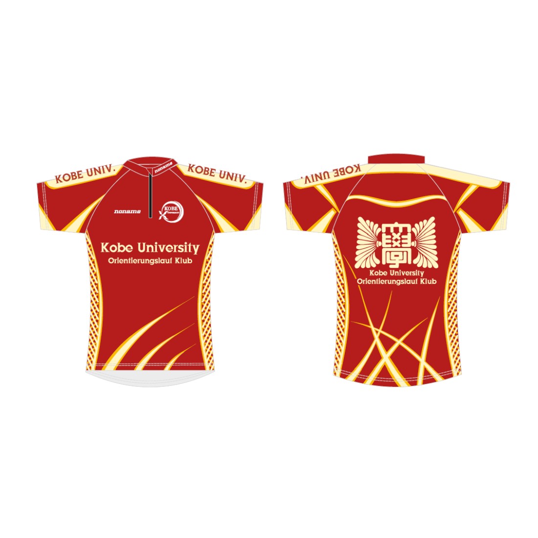 北の台地に長い歴史を持つ北海道大学オリエンテーリングクラブの皆さんからレースウェアとしてコンバット作成のご依頼をいただきました。オリジナルデザインをイラストレータにてご作成いただいておりましたので、それをnoname本社のデザイナーがコンバット用に調整、色合いなどを確認しながら仕上げました。こだわりのデザインだっただけにご希望に添えられるか不安もありましたが、とてもご満足いただけたようで安心した記憶が強く残るデザインでした。